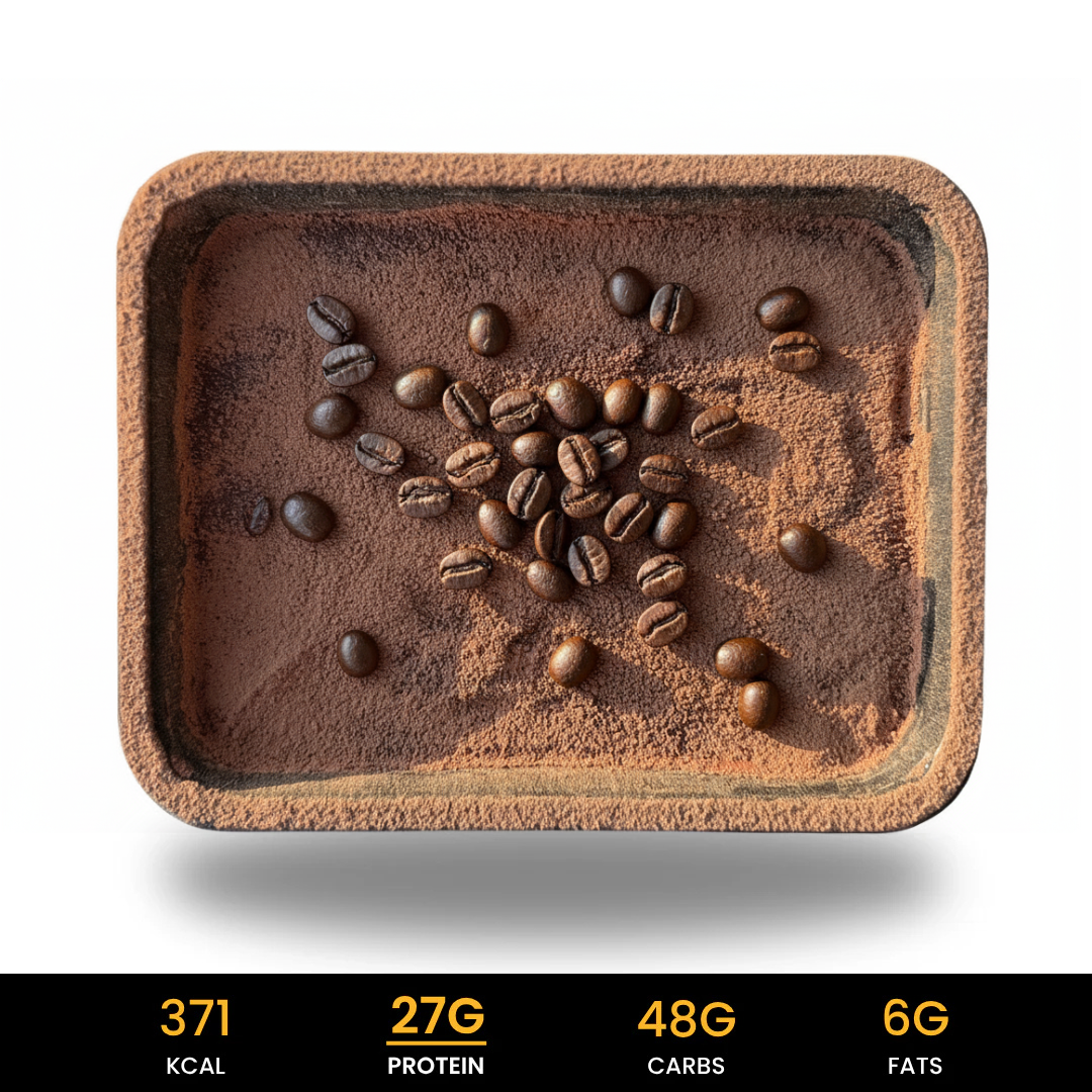 Oat flakes, Low-fat quark, Coffee, Cinnamon, Whey protein concentrate (milk), Sweetener, Chia seeds, Water, Raw cacao powder, Sweetener, Celtic sea salt.