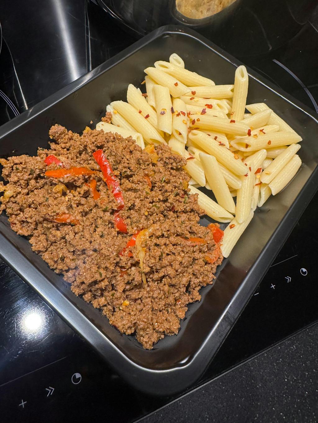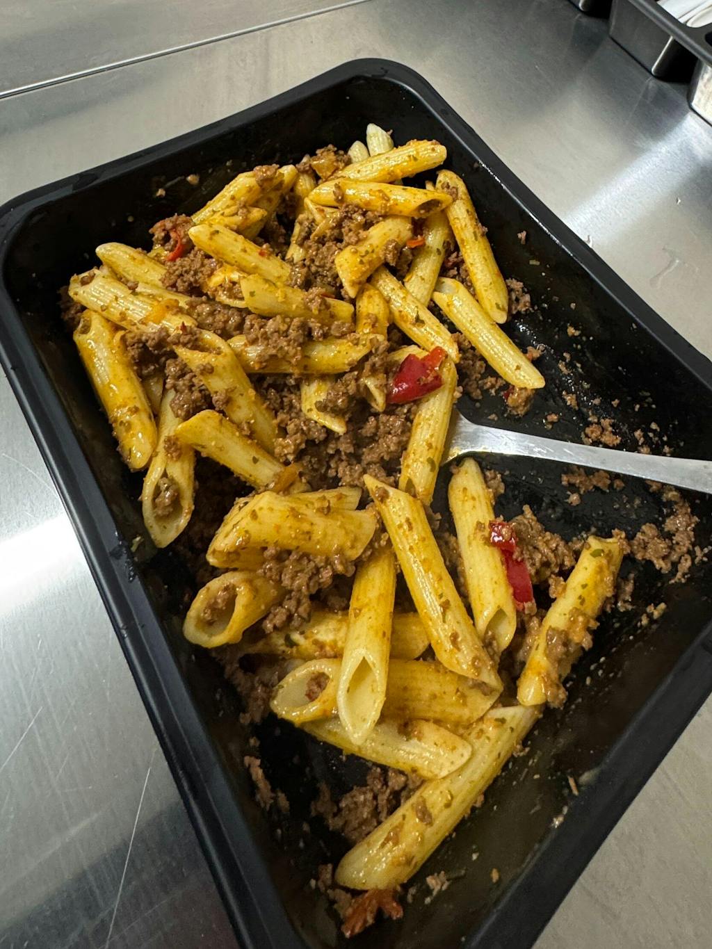 Penne Spice Beef: Healthy, halal ready-made meal delivery! Delicious spicy beef, bell pepper, onion, and firm penne. This protein-rich frozen meal is filling, stimulating, and made for those who enjoy it. Premium meals delivered to your door.