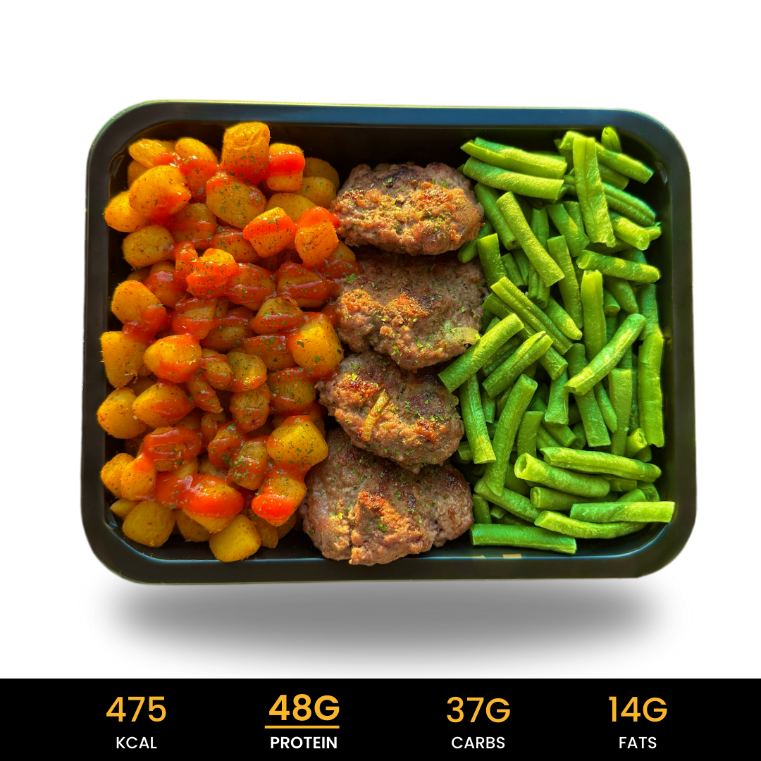 2x Turkse Köfte met Aardappel Krieltjes en Sperzieboontjes