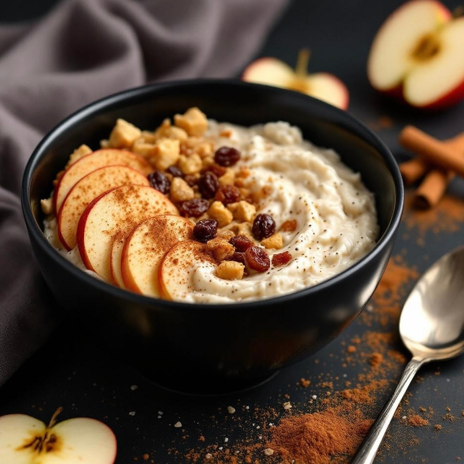 Havervlokken, Magere kwark, Appel, Rozijnen, Kaneel, Wei-eiwit concentraat (melk), Zoetstof, Chia zaad, Water, Keltisch zeezout.