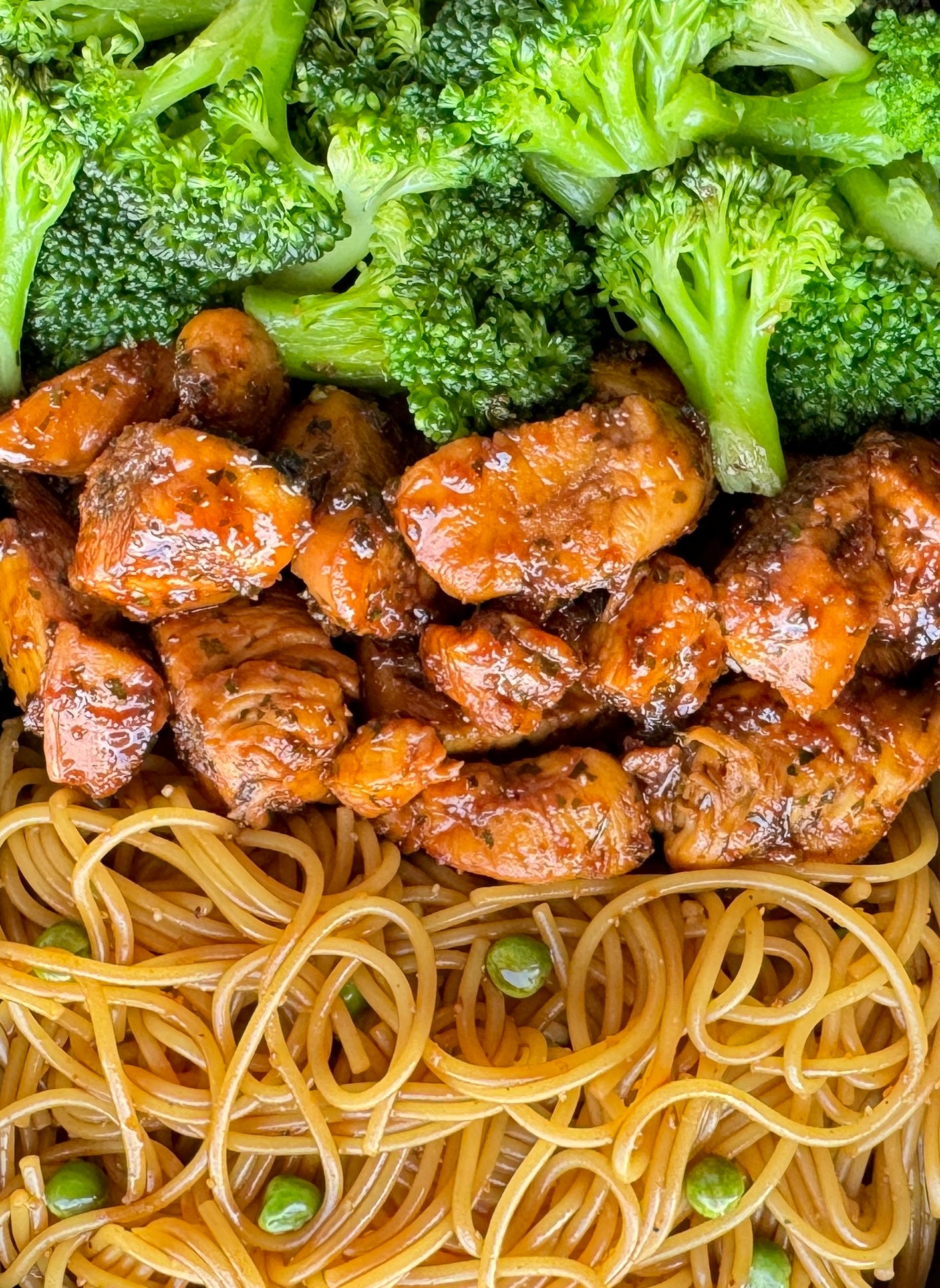 Durum Tarwe PASTA, Kipfilet (Halal), Broccoli, Ketjap Manis, Ketoembar, Gember, Peterselie, Doperwten, Knoflook, 5-Spice, Keltisch Zeezout, Room Boter (Gras Gevoed).