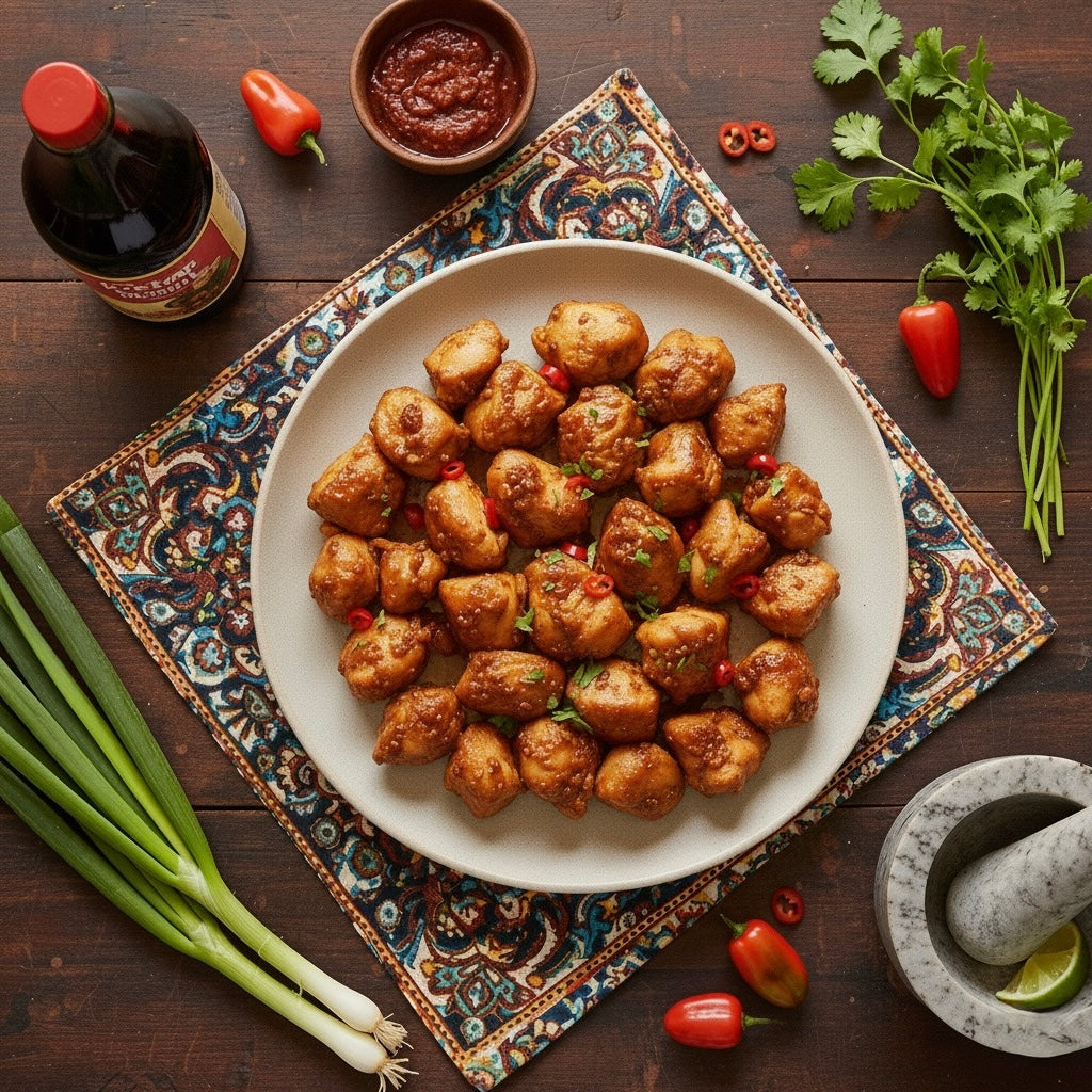 Kipfilet (Halal), Ketjap Manis, Ketoembar, Knoflook, Peterselie, Gember, Zwarte Peper, Keltisch Zeezout, Room Boter (Gras Gevoed)