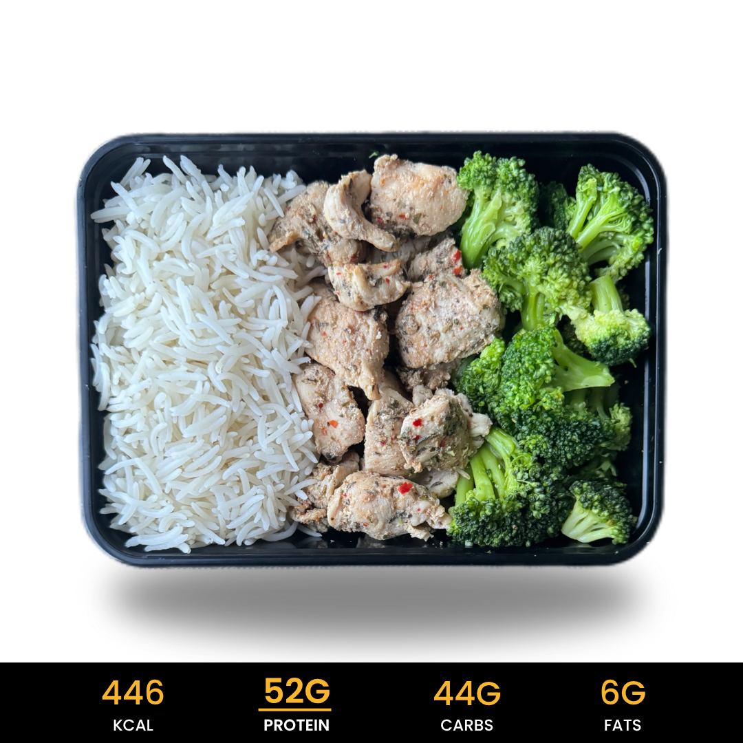 Wat dacht je van onze oer traditionele Basmati rijst Italiaanse kip Broccoli? Geniet van perfecte Italiaans gekruide kip, verse broccoli en gestoomde Basmati rijst, dit gerecht mag nooit ontbreken in een sterk dieet!